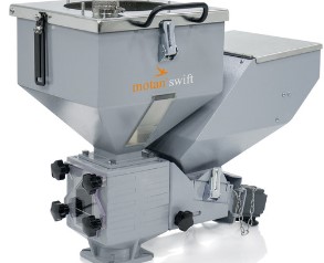 Unique Removable Access Door - The weigh pan and mix chamber are easily accessed through a removable door. The mix chamber agitator is permanently attached to the door and uncouples from the drive mechanism when the door is removed. This unique safety feature renders the agitator inoperable when the machine is opened and eliminates the need for electrical interlocks.
