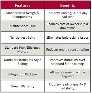 - A variety of options and accessories to maximize conveyor capabilities
